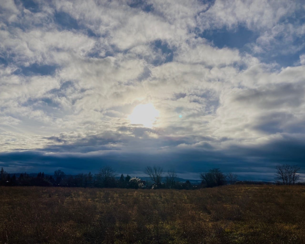 Ja, es ist Winter und ja, es ist einen wesentlichen Teil des Tages dunkel. Und gleichzeitig scheint und wärmt die Sonne in den Stunden dazwischen - sogar mit noch eindrucksvollerem Licht und imposanterer Wolkenshow als zu den anderen Jahreszeiten, wie ich finde. Als möchte sie ihre kurze Anwesenheit mit dem Mehr an Pomp kompensieren. Ich bewundere sie auf den zugigen Feldwegen und halte sie als Erinnerung für die dunkle Tageszeit fest.