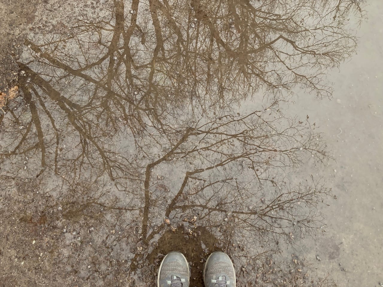 Himmel und Erde. Laub und Matsch. Wasser und Äste. Schotter und Spuren.