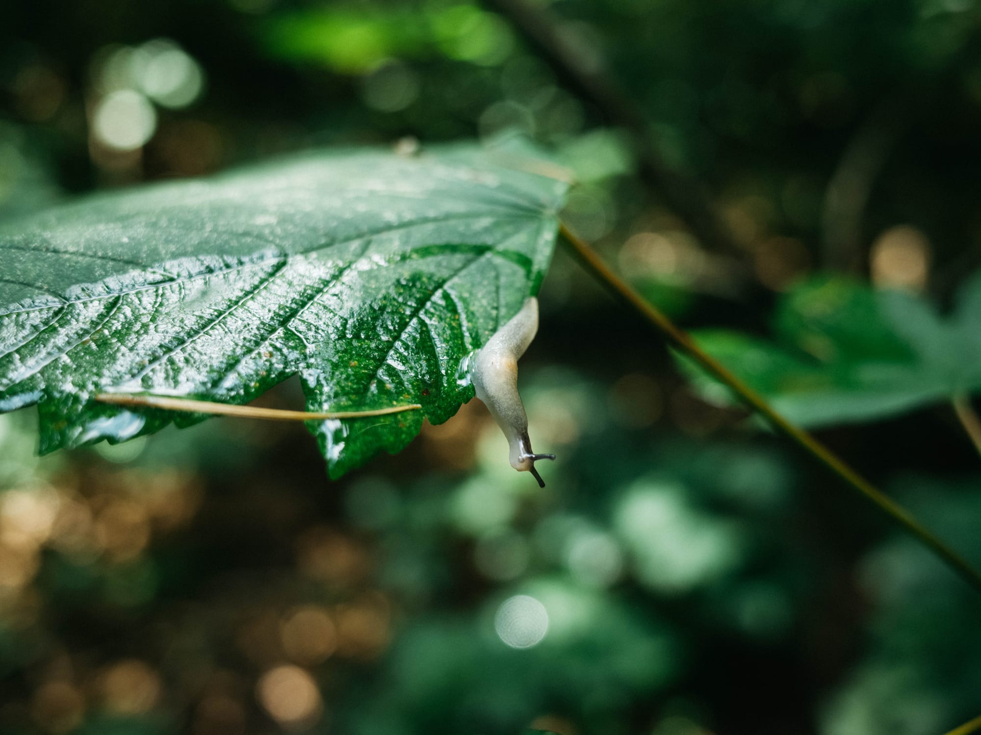 Über den Luxus ihn an einem Montagmorgen aufsuchen zu können. Nach dem Regen, in kühler und feuchter Luft nach heißen Tagen. Ein bisschen kommt schon der Herbst durch, nur ein bisschen. Ein paar Blätter machen schlapp und lassen sich gelb fallen. Die Holunderbeeren färben sich schon etwas dunkel, die Brombeeren funkeln dunkellila durchs Dickicht. Die Vögel machen weniger Rabatz, die Schnecken sind dafür umso emsiger. Leiser nur und langsamer,