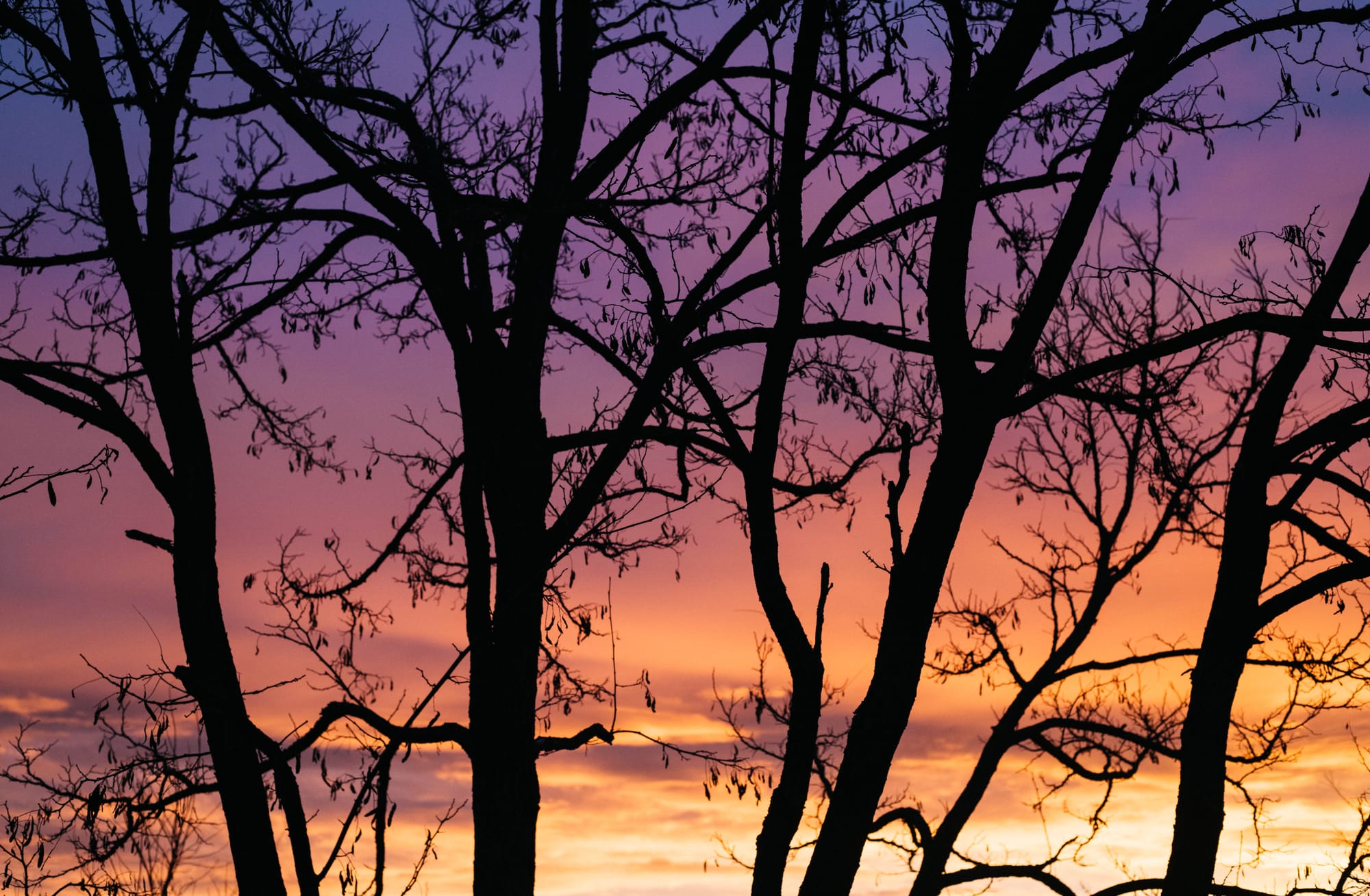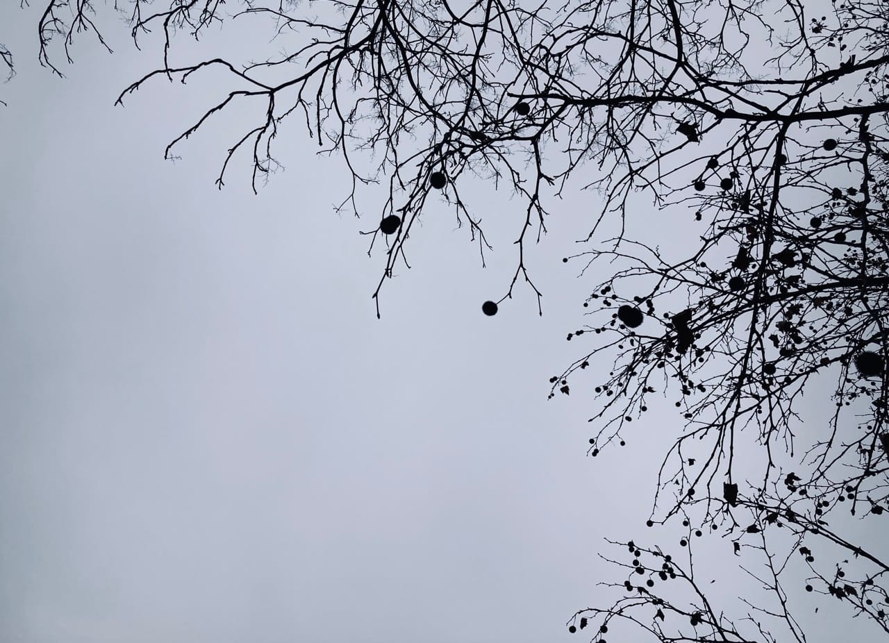 Am Himmel war farbtechnisch heute früh gut was los, vor lauter Pracht kriegt man sich kaum ein, so schnell wechseln Lichtspiele und Akzente. Da können Mensch und Baum nur staunend zusehen, alles tanken, was möglich ist, denn - wie wir wissen - ist auch dieser Moment flüchtig.