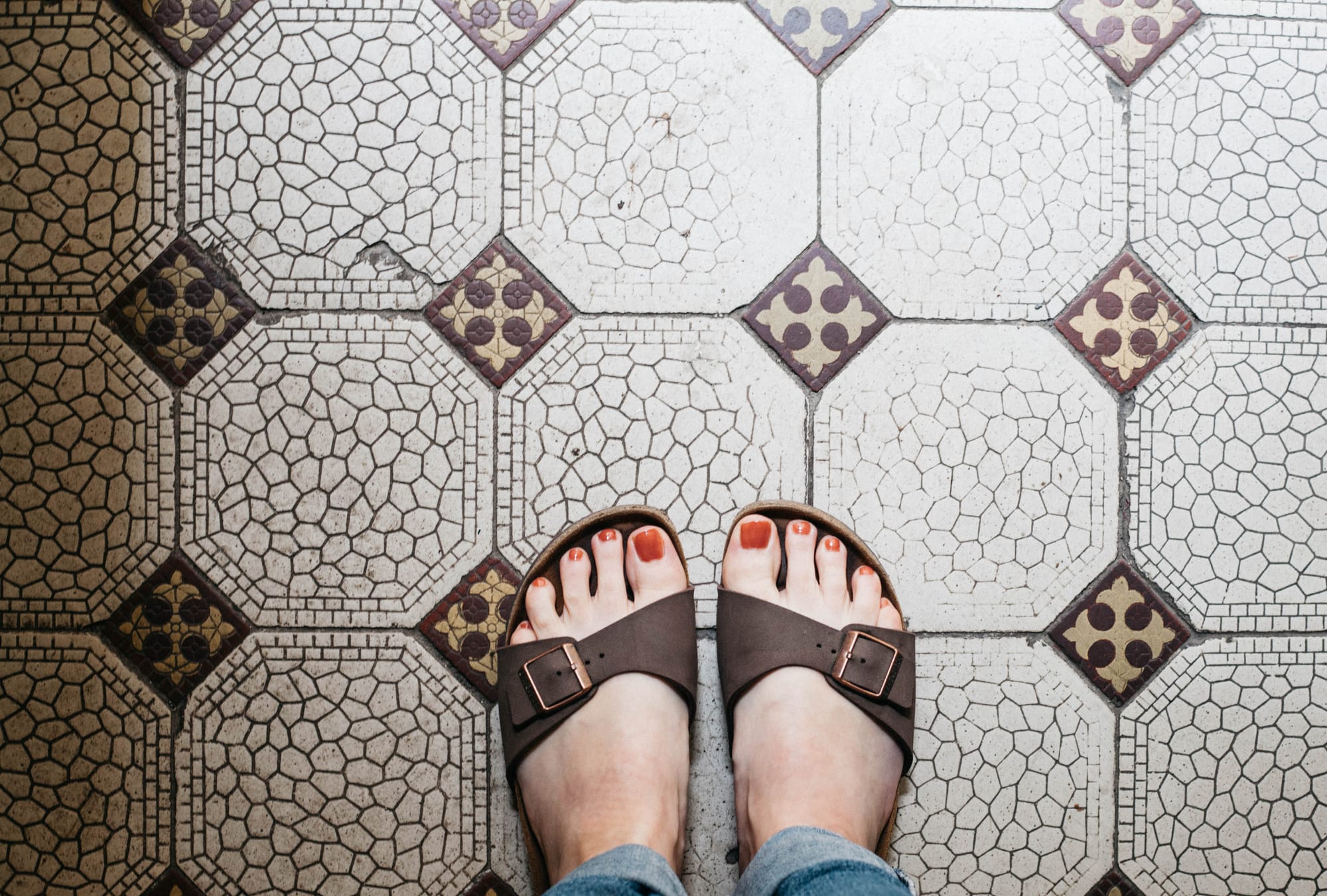 Wo stehe ich gerade? Wie nehme ich meine Füße wahr? Auf welchem Untergrund? Was erspüre ich mit den Fußsohlen? Was Hartes, Weiches, Warmes oder Kühles? Erlaube ich mir, mich von dem Boden unter mir tragen zu lassen? Möchte ich noch was abgeben? Wie viel Platz haben meine Zehen? Wie fest ist mein Stand? Kann ich das gerade alles so ok sein lassen, ohne es anders haben zu wollen? Was erlebe ich sonst noch so, wenn der Fußboden für meinen Tastsinn gerade das größte Highlight darstellt?